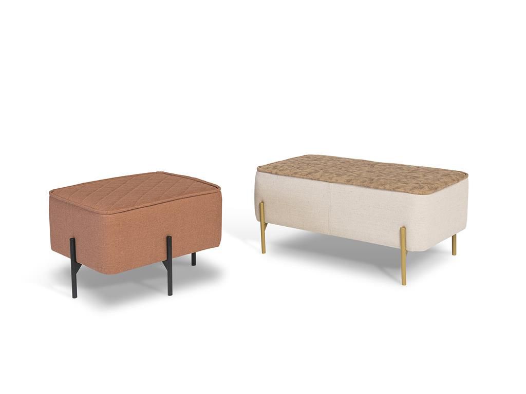 O Pufe Arraial do Cabo possui assento com debrum ao redor e parte superior com costura matelassê. Estrutura em madeira eucalipto, costura overlock e sobre costuras nas emendas. Assento com espuma D28 HR de 6cm e percintas elásticas italianas.